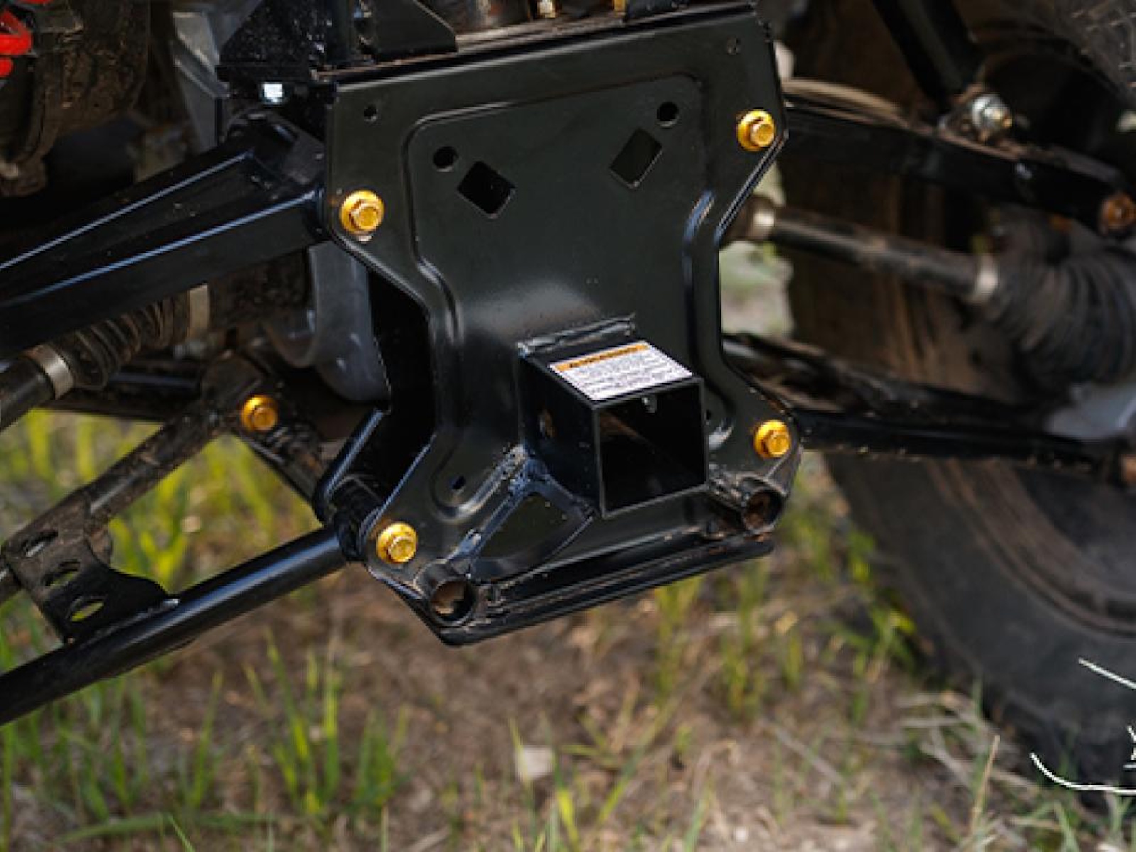 - The Alterra 600 is equipped for hard work as well as a great ride. With a front tow hook and 2-in rear receiver, your ATV can pull over half a ton.