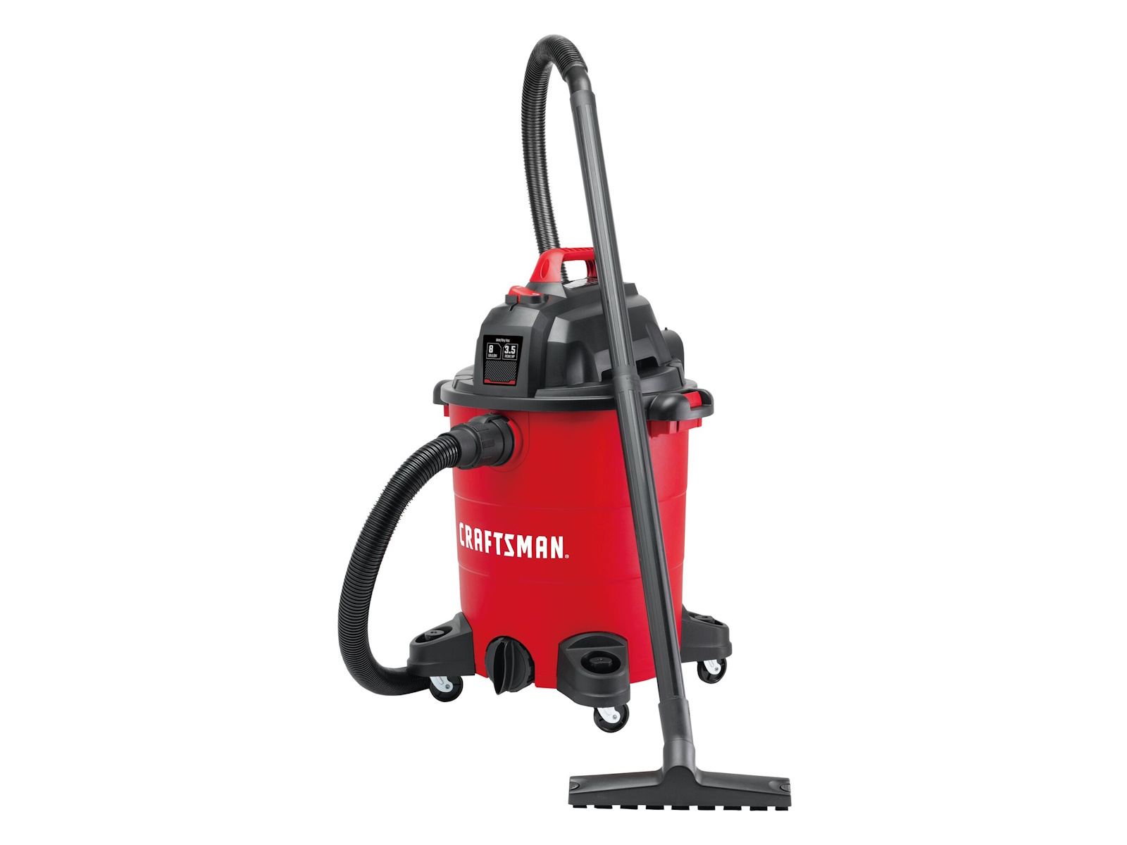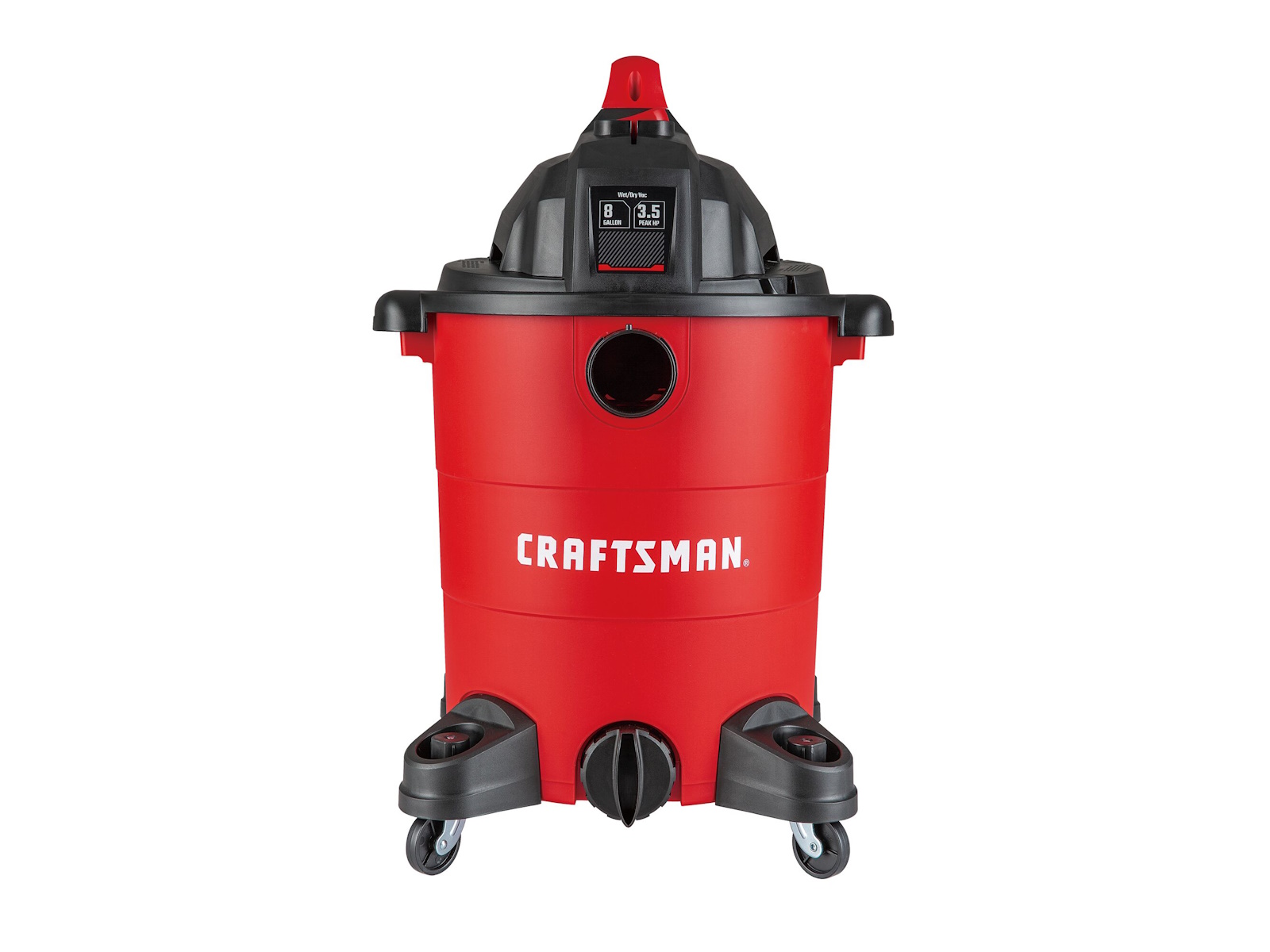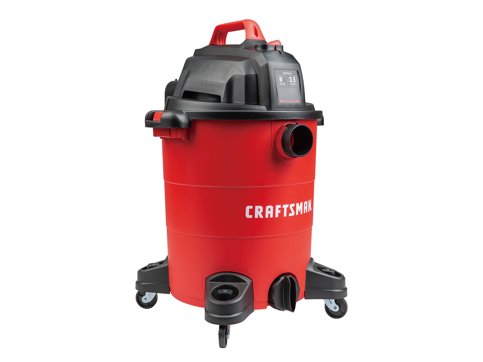 Be ready for the messiest jobs around the house, garage, or shop with the 8 gal.* Electric 3-1/2 Peak HP  Wet/Dry Vacuum. Whether its dust collection in the workshop or cleaning up liquid spills at home, the 3-1/2 Peak HP  motor makes clean-up easy. The balanced top handle design and durable, wide-stance casters provide stable transportation during and after use. In no time, convert this multi-functional vacuum into a blower to remove debris from your yard or patio.