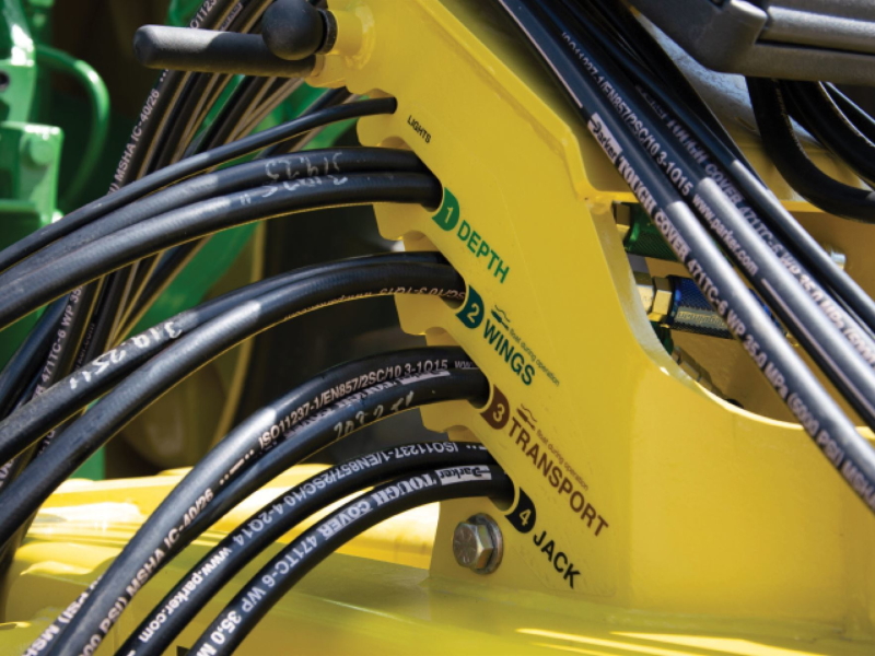 Pro-Till is user-friendly, allowing the operator to engage the transport position from the safety of the tractor seat. The wing-forward design is incredibly compact and stable for road transport. It incorporates an ultra-low profile-under 12’ - which is ideal for clearing bridges and power lines, and folds in less than 10 feet, making it possible to pull down narrow roads and in areas with width restrictions. The hitch weight is positive, creating a safe and highly maneuverable machine.