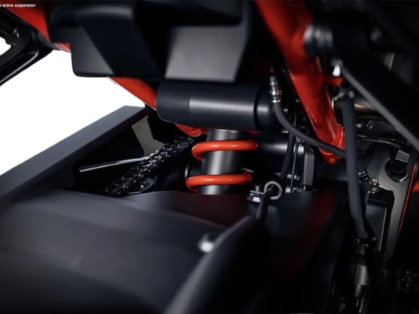 radially mounted, monoblock, 4-piston caliper; Rear: floating, single piston caliper | dual rotor, floating, tower- mounted; Rear: solid uniform expansion rotor