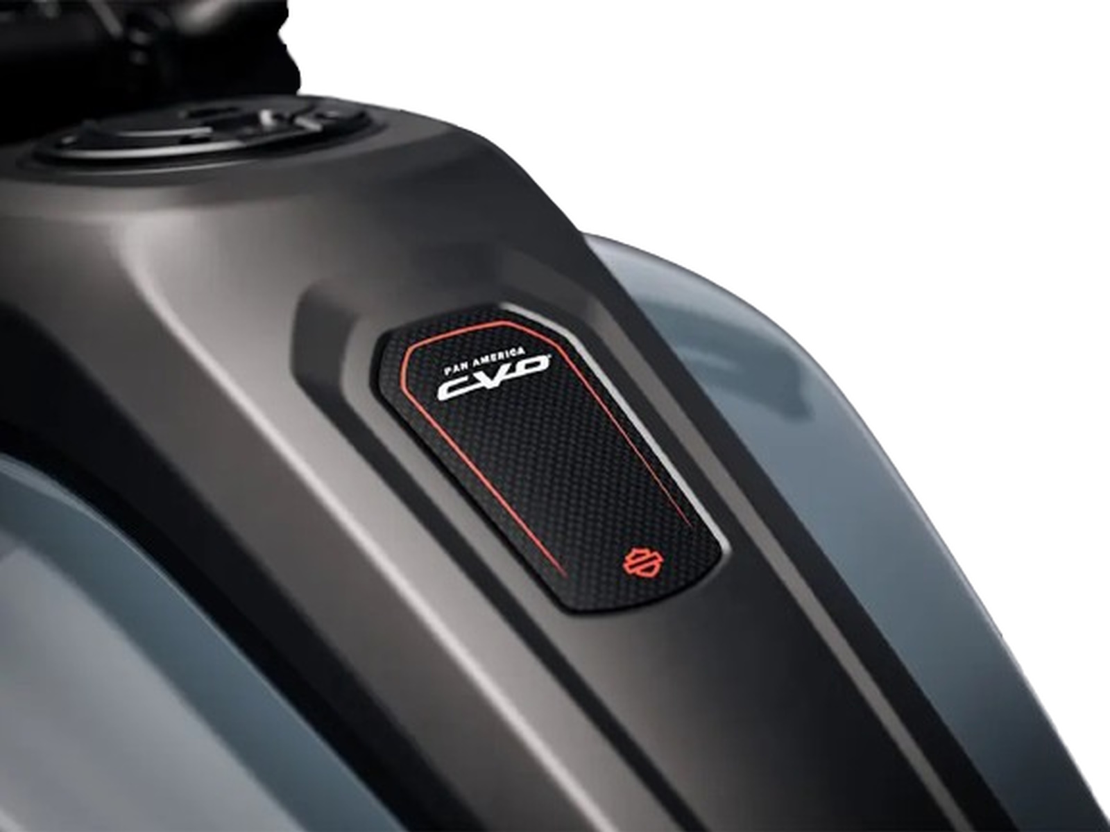 Heated grips, engine covers, fuel tank console, seat, and luggage all feature decorative CVO inserts and