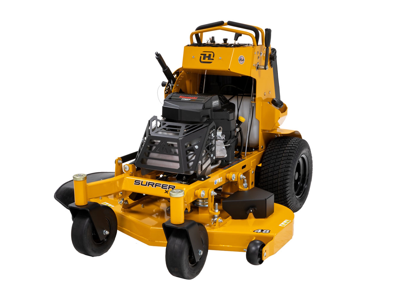 The Surfer X stand-on packs the muscle to stand up to your toughest days. Its rugged 10-gauge fabricated deck is designed to deliver precision cuts that impress, while the compact 34” deck design breezes through most gates and tight spaces. Adjustable hip pads and a suspension platform help to smooth out the ride for user comfort. Easy on-and-off access , contoured controls, simple maintenance, and the confidence of a 4-year/800-hour limited warranty.