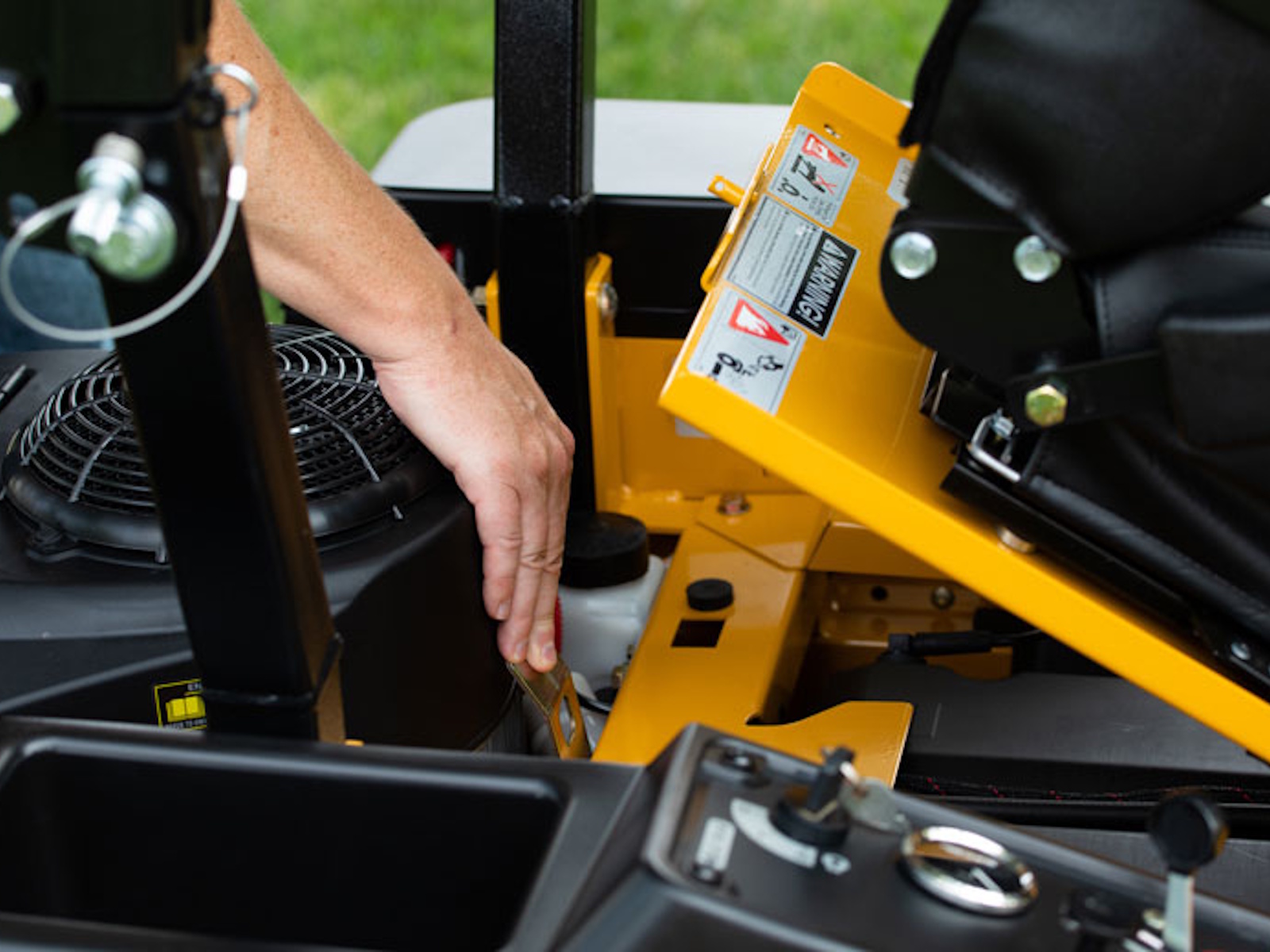 - Flip-up seat pan, removable floor pan and toolless removable pulley covers help make maintenance easy and simple.