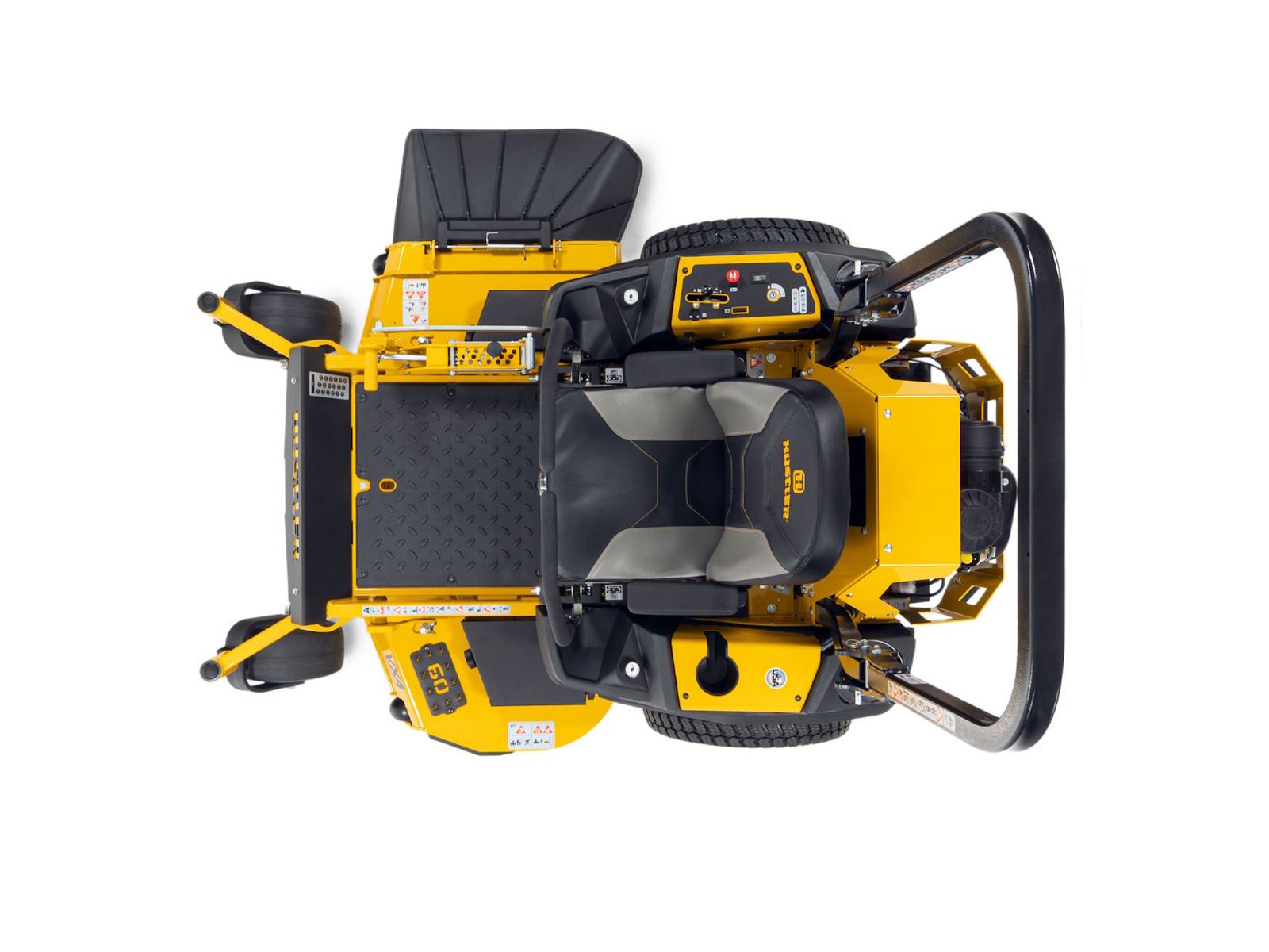 Features Hustler's VX4 Deck, Heavy-Duty Hydraulics.