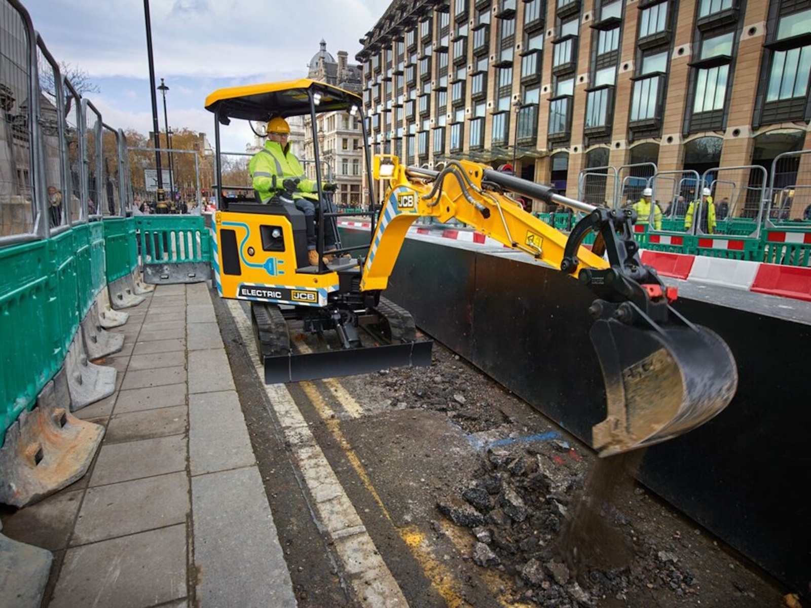 The JCB 19C-1E electric mini excavator is safer for the environment, operators and bystanders, and is ideal for working indoors and in urban areas.