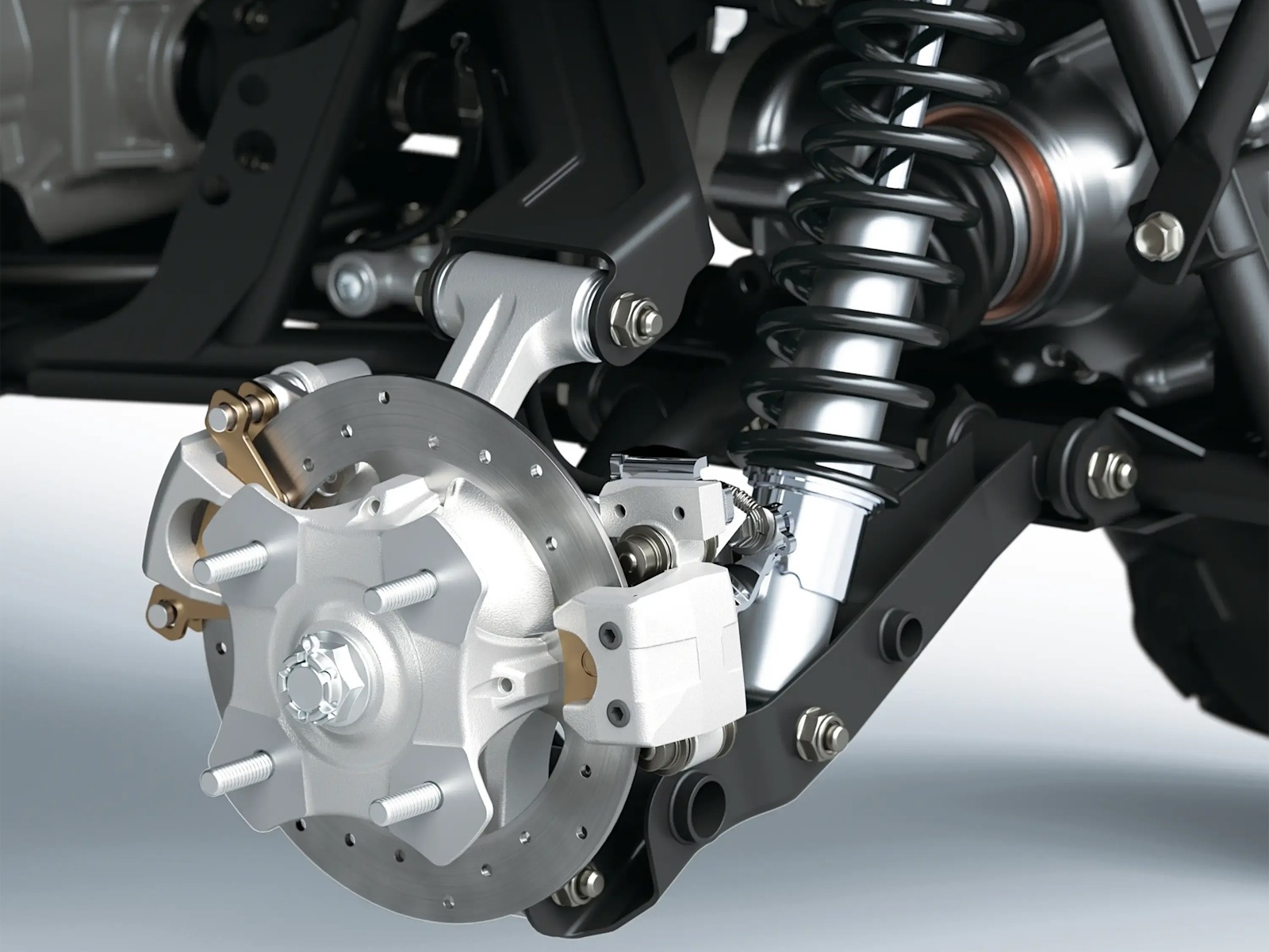 Dual A-arm, adjustable spring preload/7.6 in