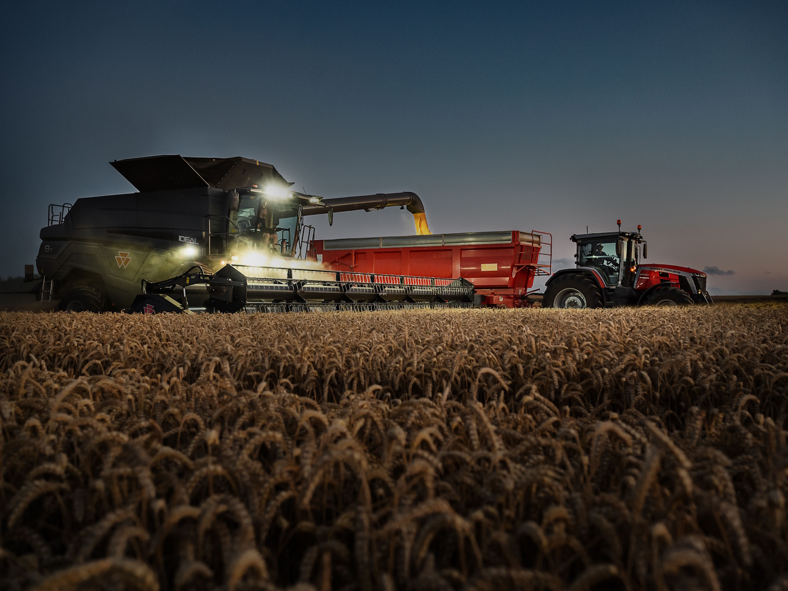 - Standard on the MF IDEAL 9 and an option on MF IDEAL 7 and 8, the 17,100-litre grain tank unloads at up to 210 L/sec – the fastest in the industry. New auger lengths compatible with controlled traffic farming operations are available.