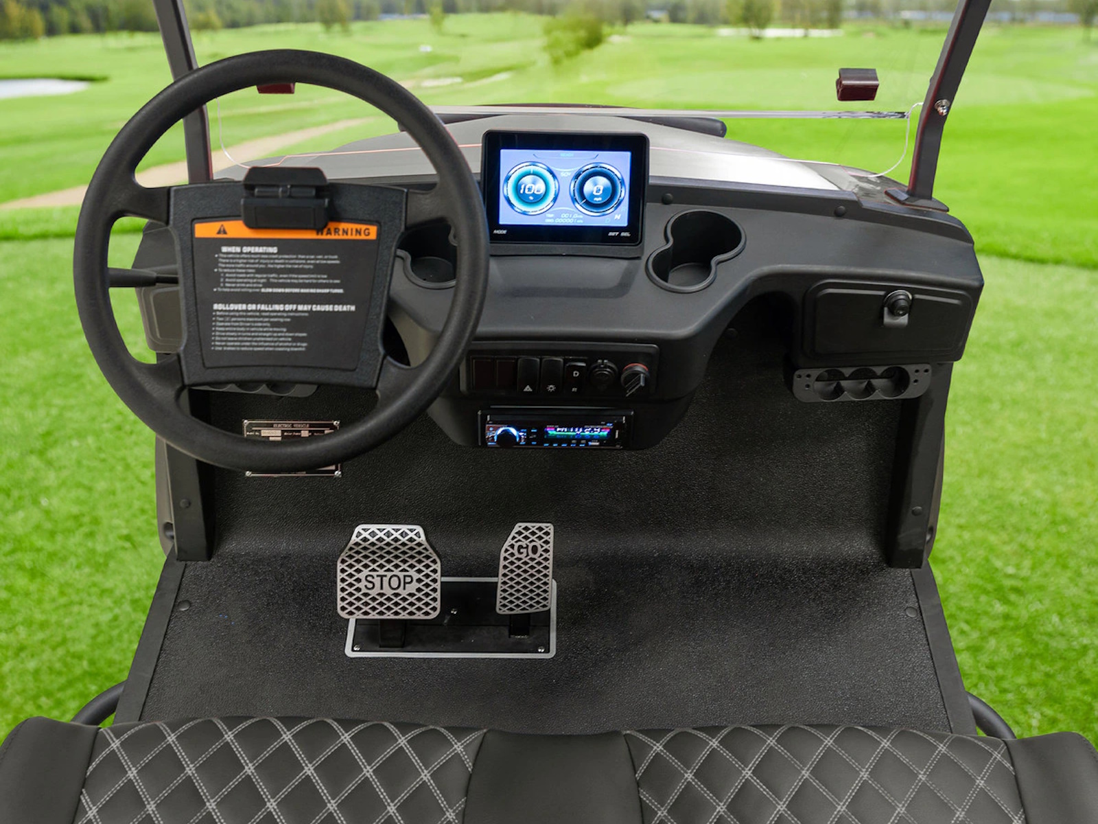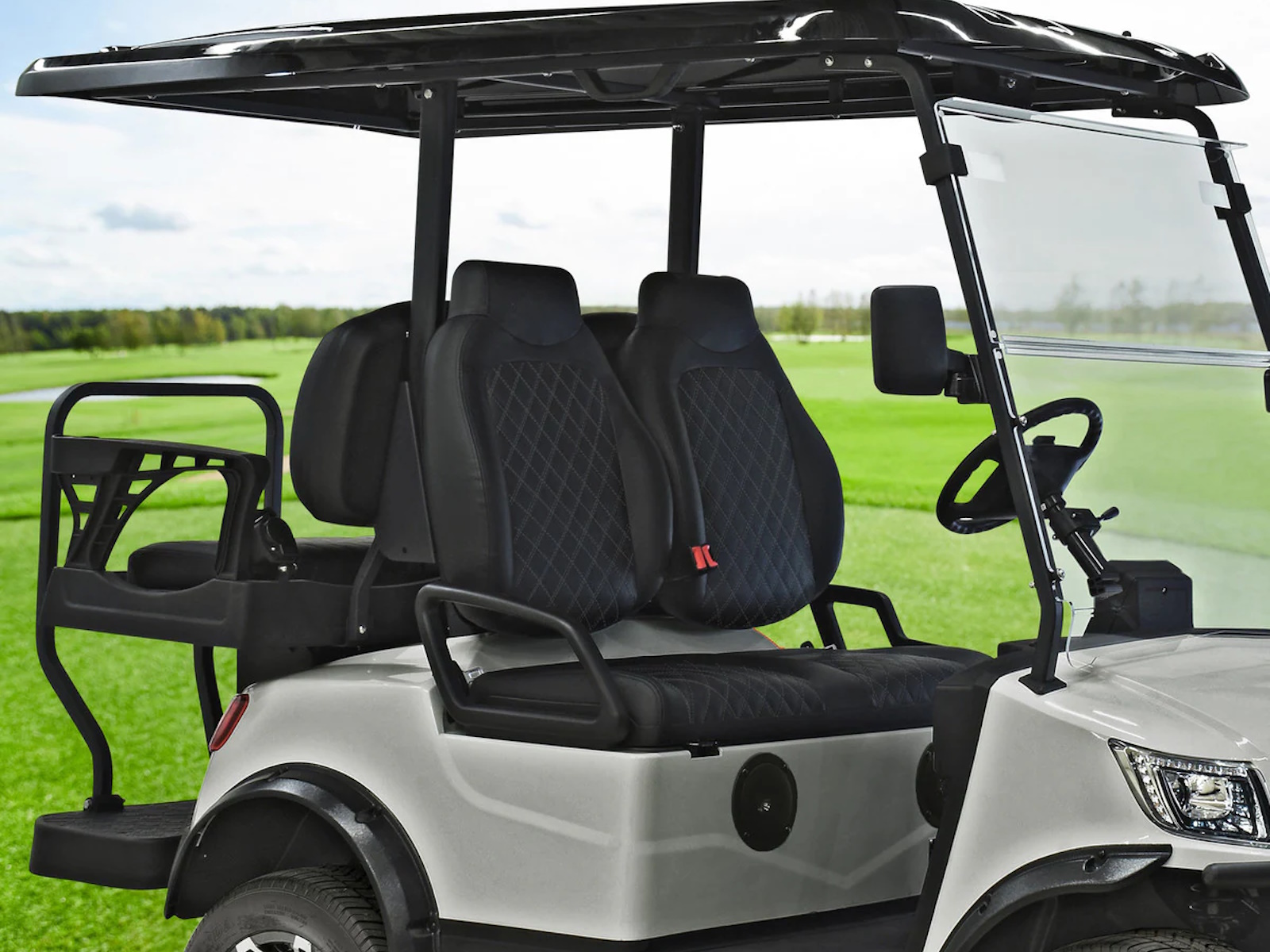 - Custom-stitched marine-grade vinyl seats