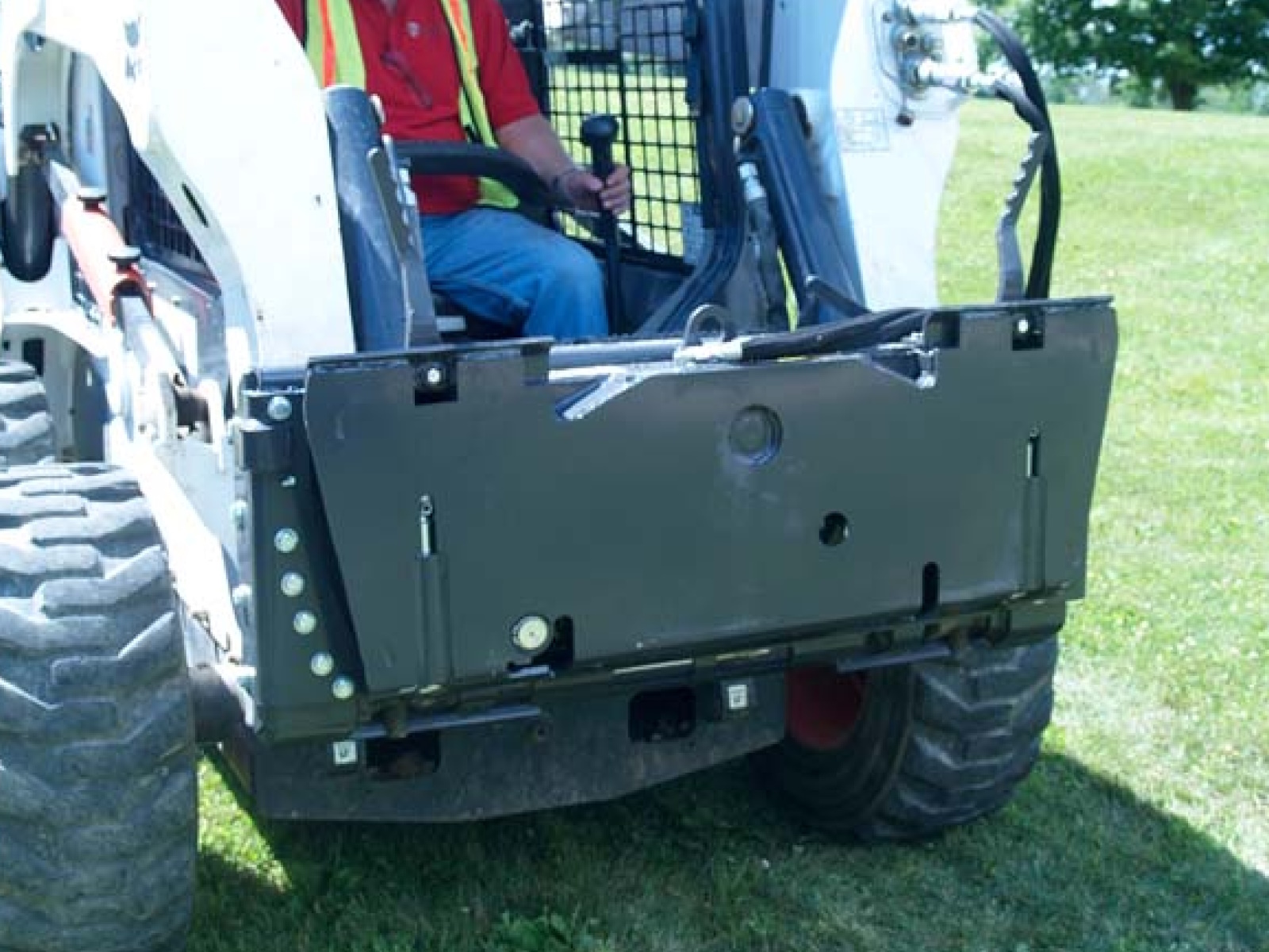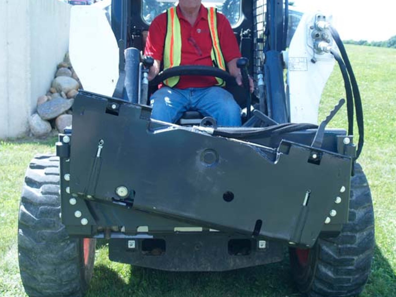 - Attaches to skid steer universal hitch to tilt 18 degrees left and right