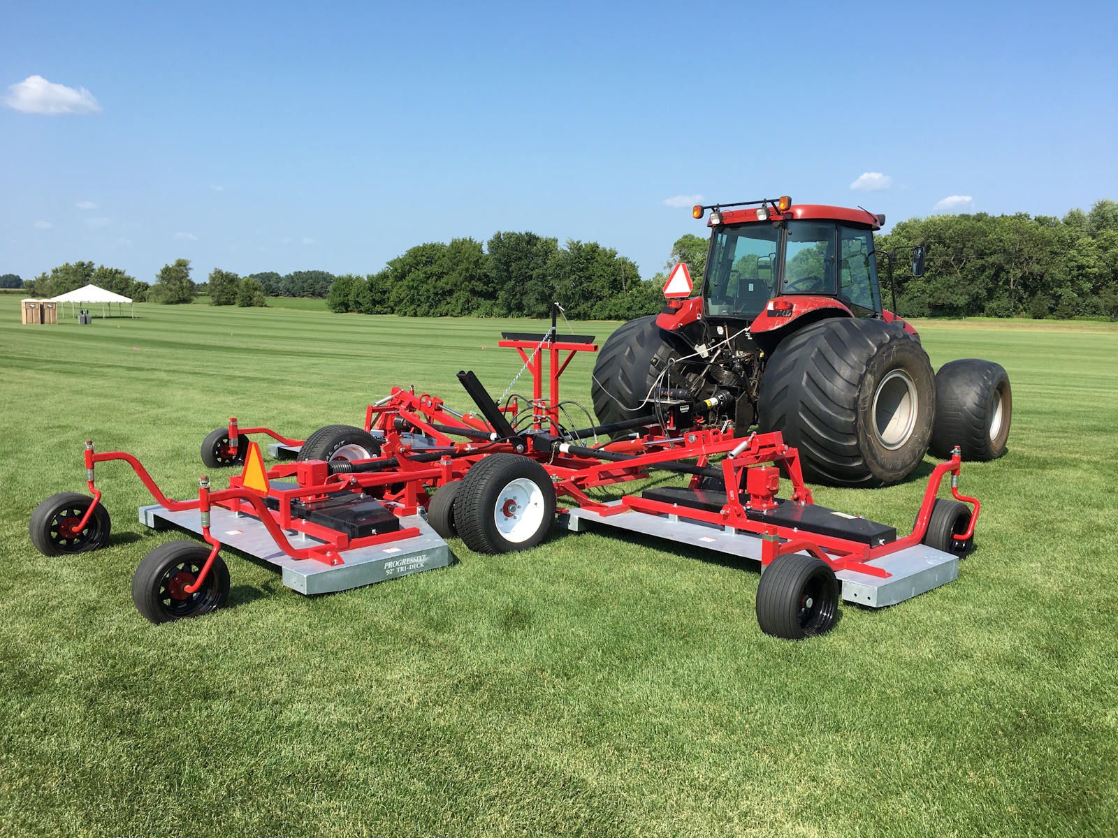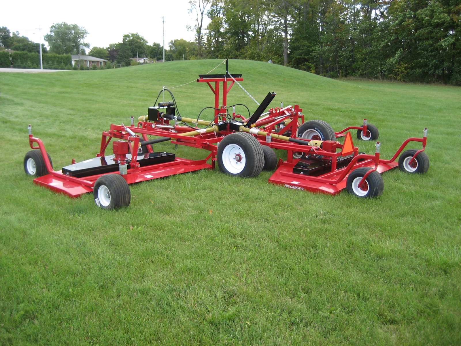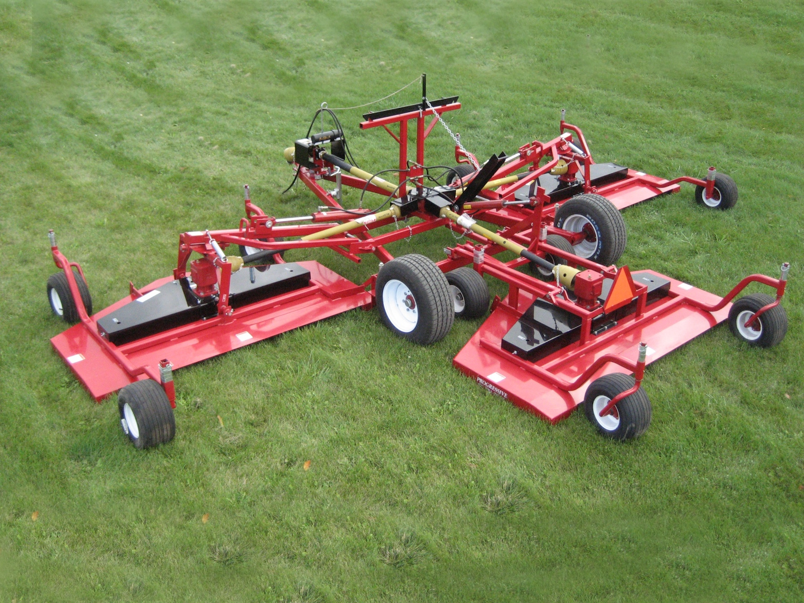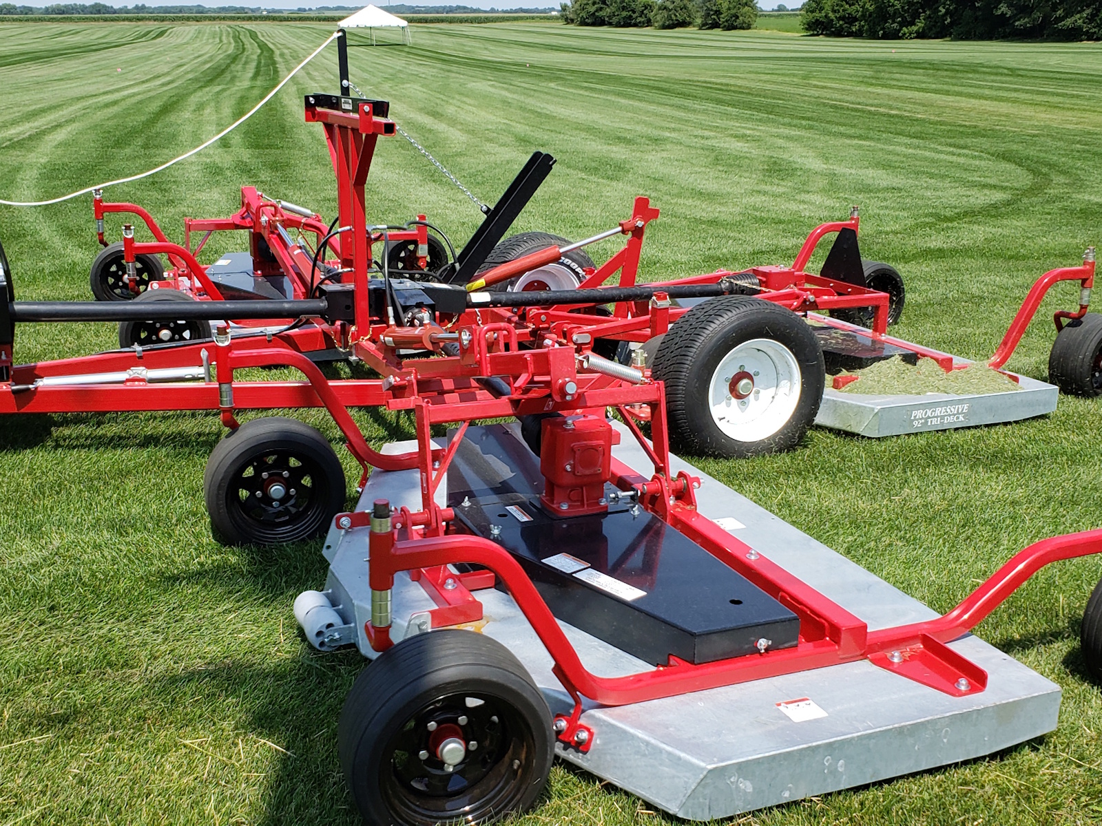 Since its introduction in 1990, Progressive’s 22 foot wide TD92 Tri-Deck Rotary Finishing Mower has become the benchmark mower of the natural grass industry. It is considered to be the most productive and cost effective wide-area natural grass mower available while delivering a quality of cut, second to none. Following extensive customer input, the Next Generation TD92 raises the bar even higher with new features that will enhance productivity and further reduce ongoing maintenance requirements and cost. The Next Generation TD92 is available with either painted or galvanized, bolt-on deck shells. Proudly built in North America, some of the standard features of the Next Generation TD92 include: enhanced clipping discharge, Maintenance Free Blade Spindles, extended 100 hour PTO Shaft Greasing intervals and fewer grease fittings than prior models. Four different OEM blades are available to match local growing conditions. Retaining many of the same components and design features that have been field proven on several thousand TD92’s, means that there is more time cutting, less time maintaining and more money in your pocket each day! The Next Generation TD92 raises the bar to new heights as the Better Built Choice!