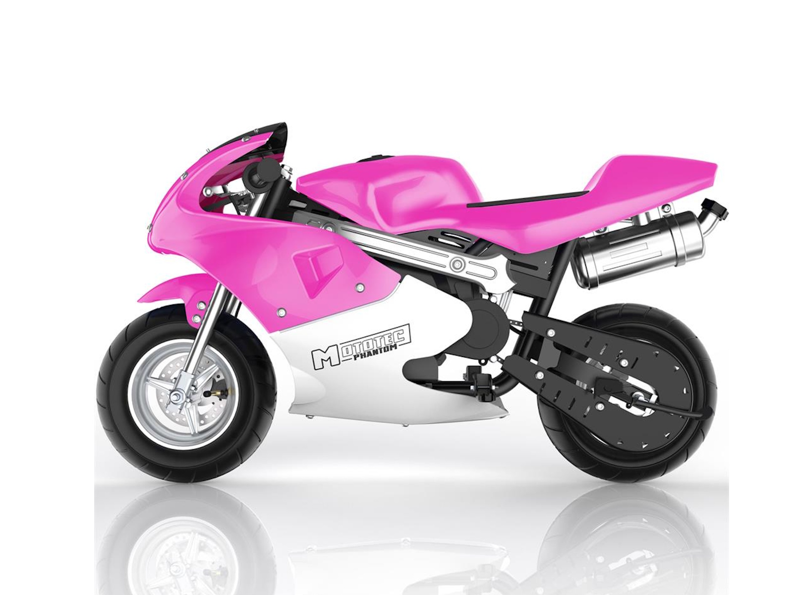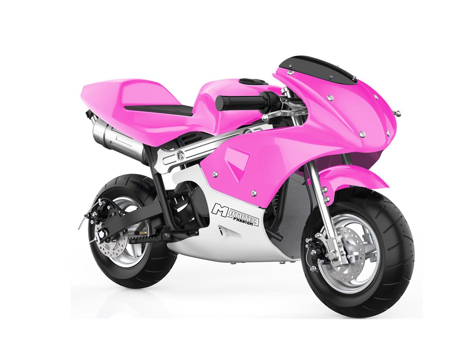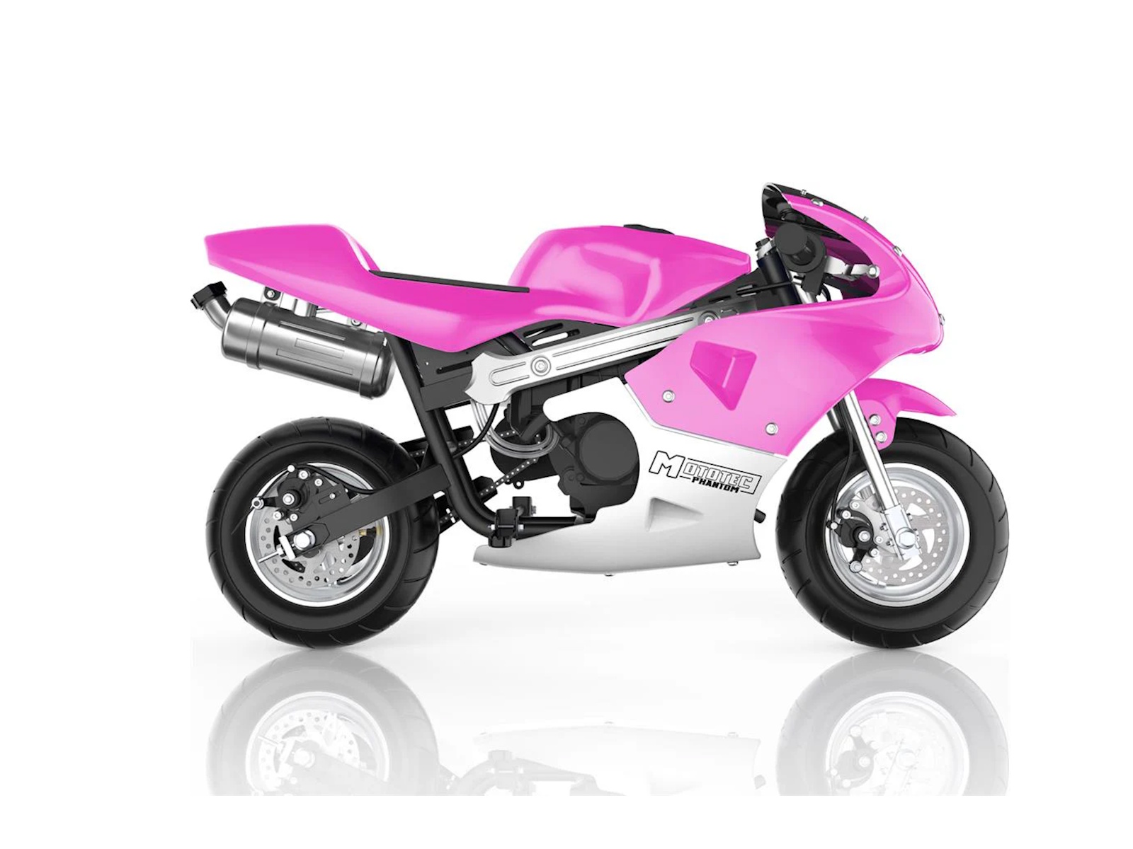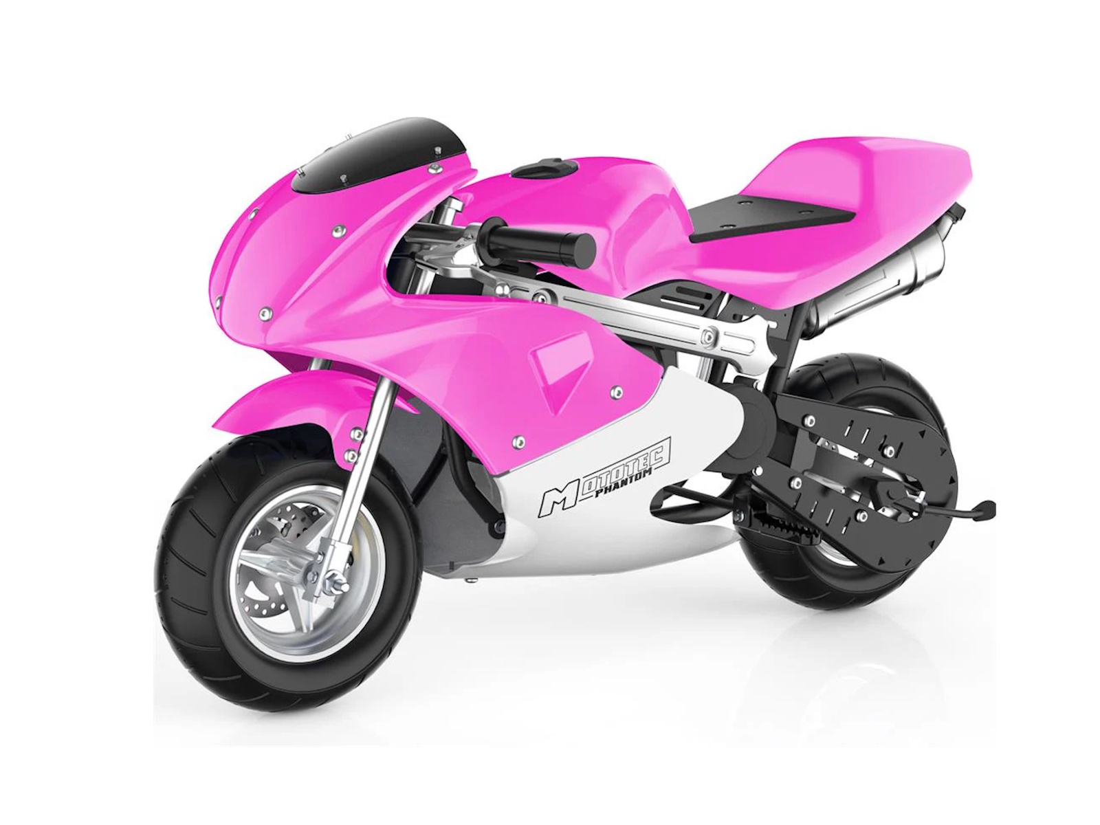 Introducing the new VenomPhantom 49cc Gas Powered Pocket Bike! Standing in at 23 inches in overall height, this tiny monster packs a punch with a 2-stroke 49cc engine. Originally made for adults to race crunched up on tiny motorcycles, pocket bikes have now become popular with kids because of their small size. And you won't find a wimpy 4-stroke engine on this model, this 2-stroke engine delivers almost twice the power.